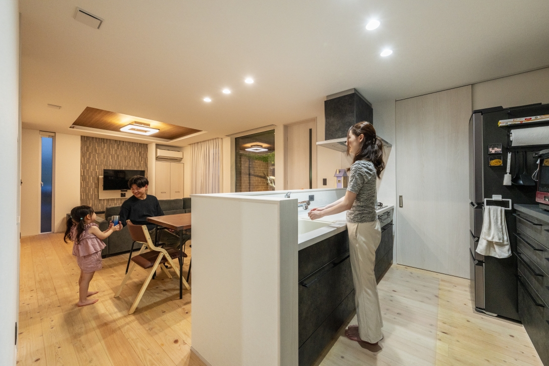 空いた時間は子どもたちと一緒に遊んだり、ソファに並んでテレビを見たり。小さな思い出をたくさん積み上げる家族時間に。