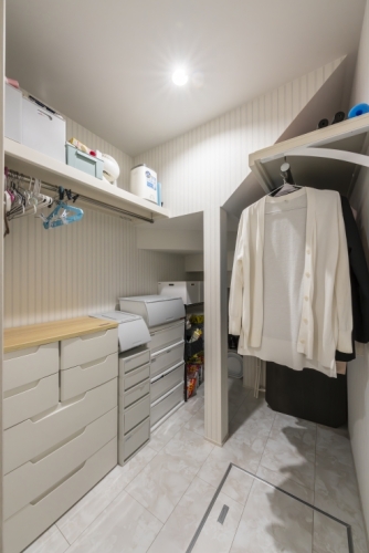 家族が増えて物が増えても、毎日の負担を軽くするためには、配置を整えた大容量の収納がベスト。