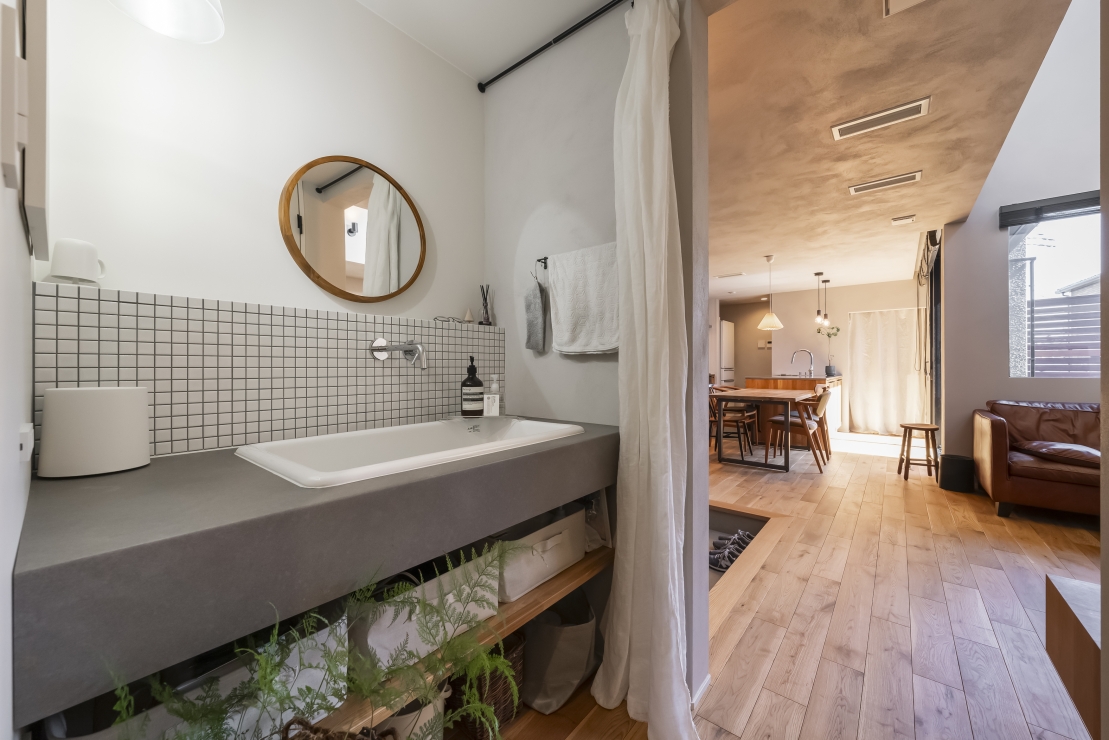LDKの奥に水まわりをまとめ、生活動線と便利さを追求。