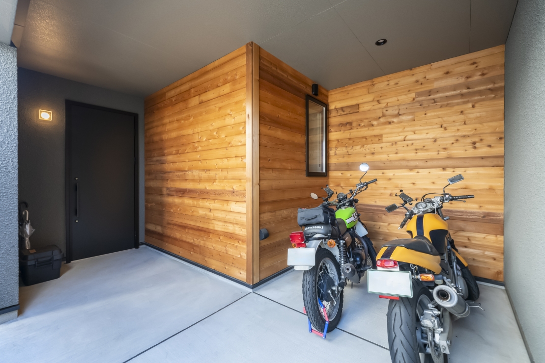 マイホームには、バイクを停められるガレージを確保したかったというオーナー様。