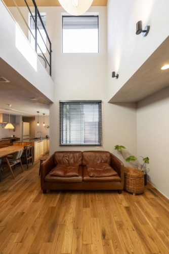 吹き抜けリビングが家族を繋ぐ、木の風合いが心地よい住まい