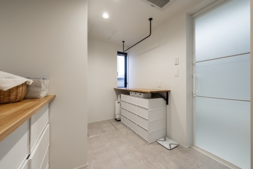 洗面室の後ろには、脱衣所兼ランドリールームがあります。